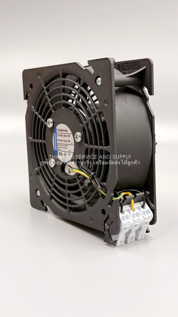 The empapst DV4600-492 is an AC axizl fan measuring 120*120*38 and weighing 0.4 kg. It operated on 115V AC with a dual frequency of 50/60 Hz. The fan draws 0.24/0.22 A of current and consumes 19/18 W of power, running at speeds of 2650/3100 RPM. It used ball bearings foe exhanced durability and featured three-wire leads. This fan is reliable choice for cabinet cooling.